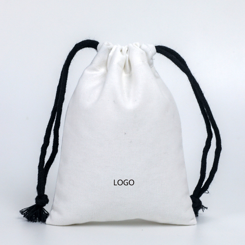 Pequeñas bolsas de polvo con cordón de tela de algodón blanco baratas personalizadas para embalaje de joyas