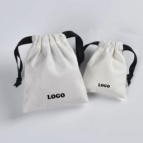 Takı ambalaj için küçük sevimli özel ucuz beyaz pamuk kumaş İpli toz torbaları